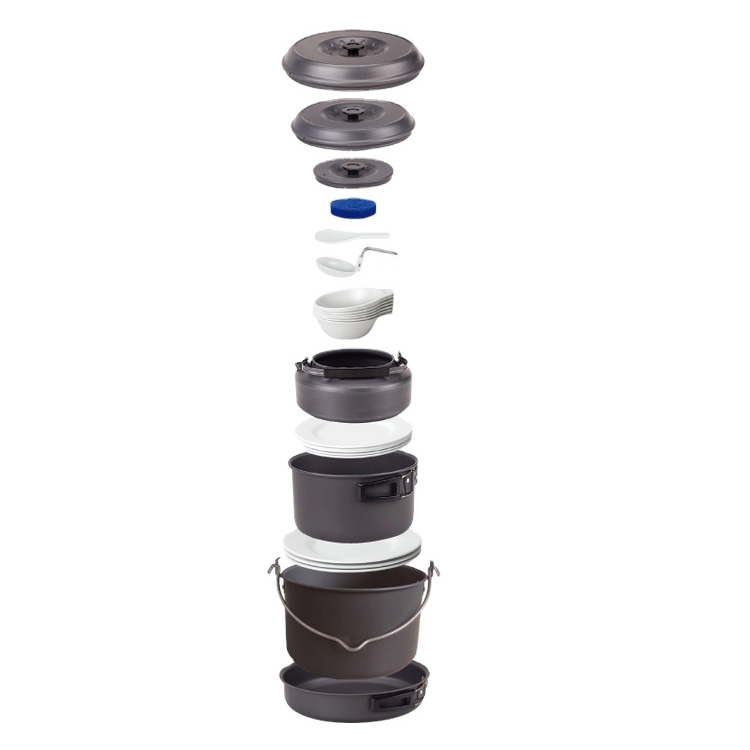 Најквалитетнији нетоксични анодизирани алуминијумски алуминијумски кухињски прибор неопходан је за планинарење. Комбиновани комплет је склопљен у мали сноп ради лакшег ношења и складиштења. Посебно је дизајниран за камповање и планинарење. Мали је, али практичан.